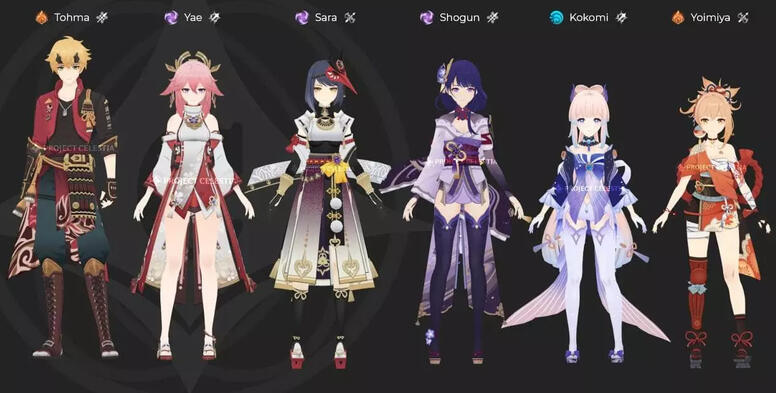 1: Intricate designs like genshin etc. (photo below as examples) + has lots and lots of small details (tattoos for example) (photo from Games Atlas article Genshin Impact: Inazuma Leaks and Characters)2: Problematic Ship(s) or pedophilic/loli stuff in general just no, character must be 18+ in NSFW/suggestive settings